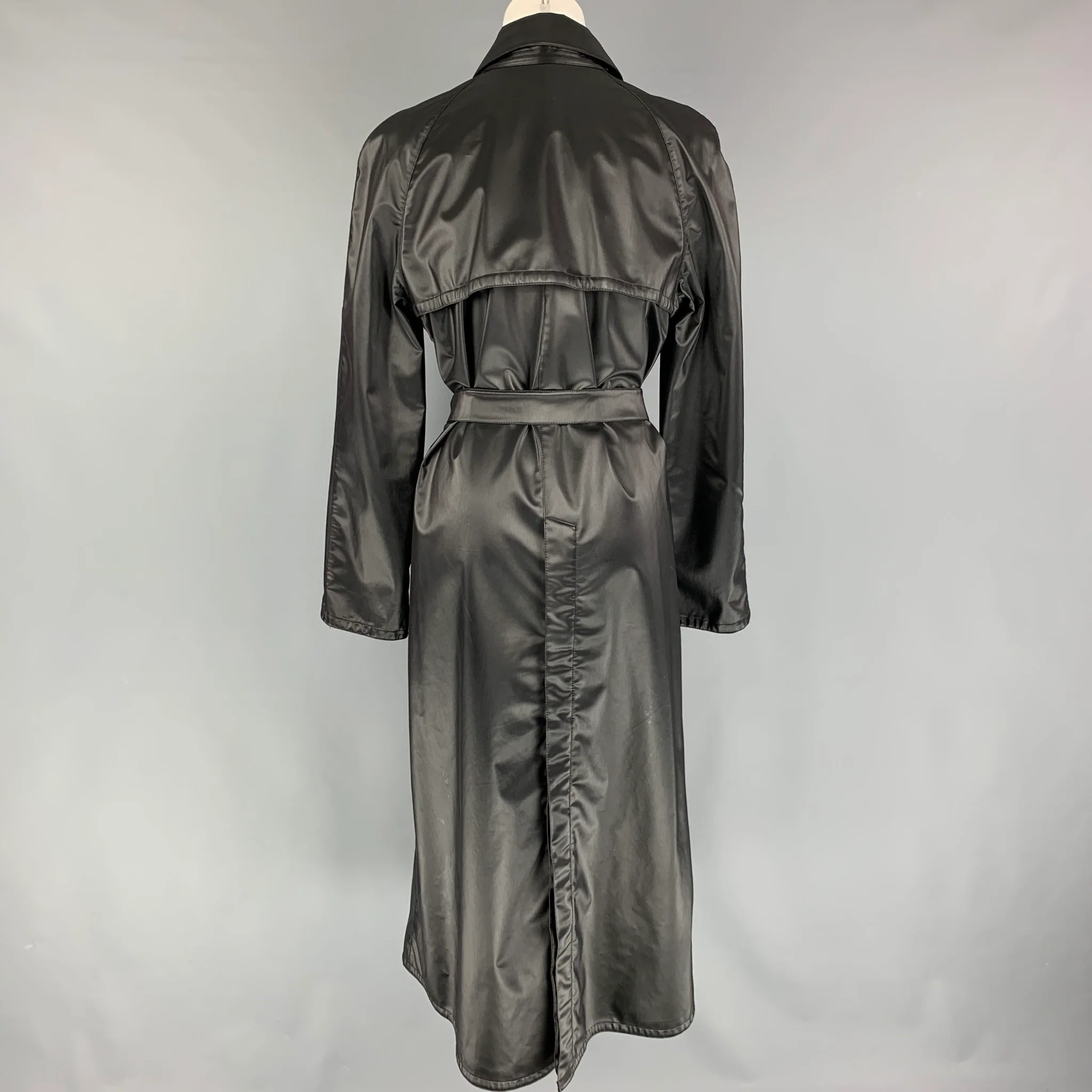 ARMANI COLLEZIONI Size 6 Black Polyester Blend Belted Raincoat
