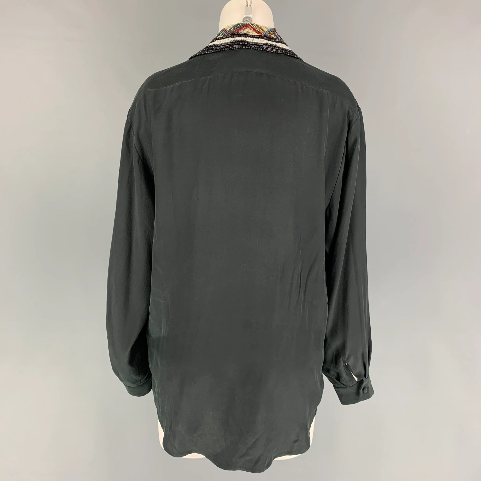 BOB MACKIE Size 8 Black Silk Beaded Long Sleeve Blouse