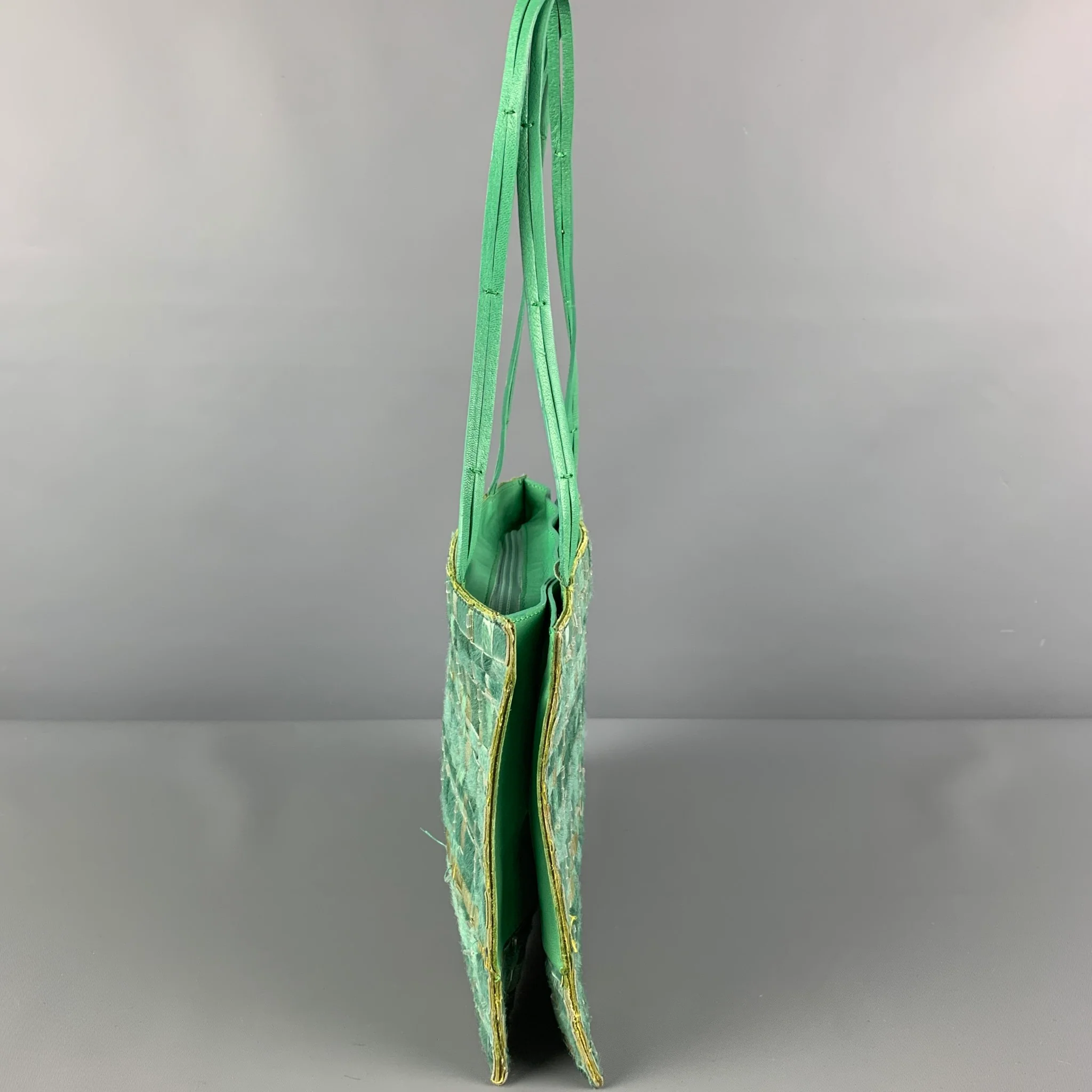 BOTTEGA VENETA Green Beaded Fur Top Handles Handbag