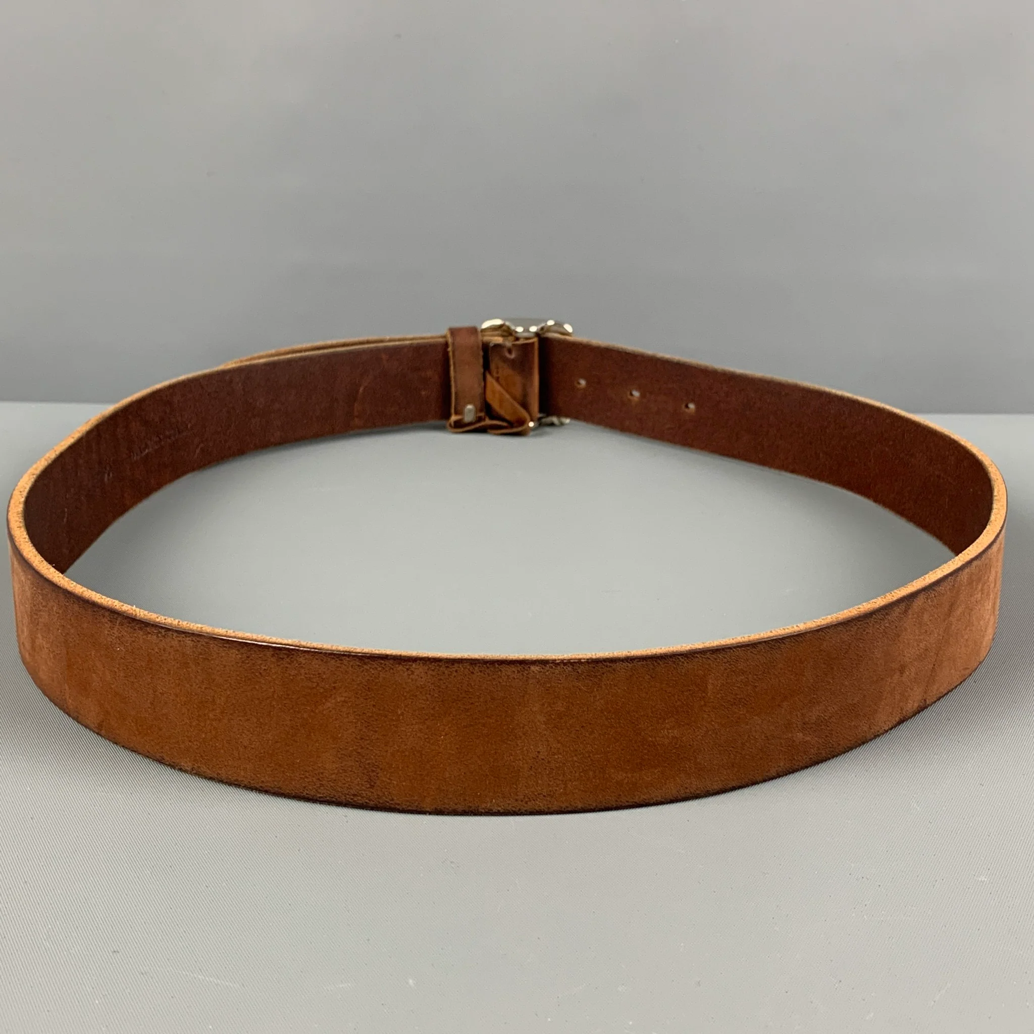 BRUNELLO CUCINELLI Size 35 Brown Distressed Leather Belt