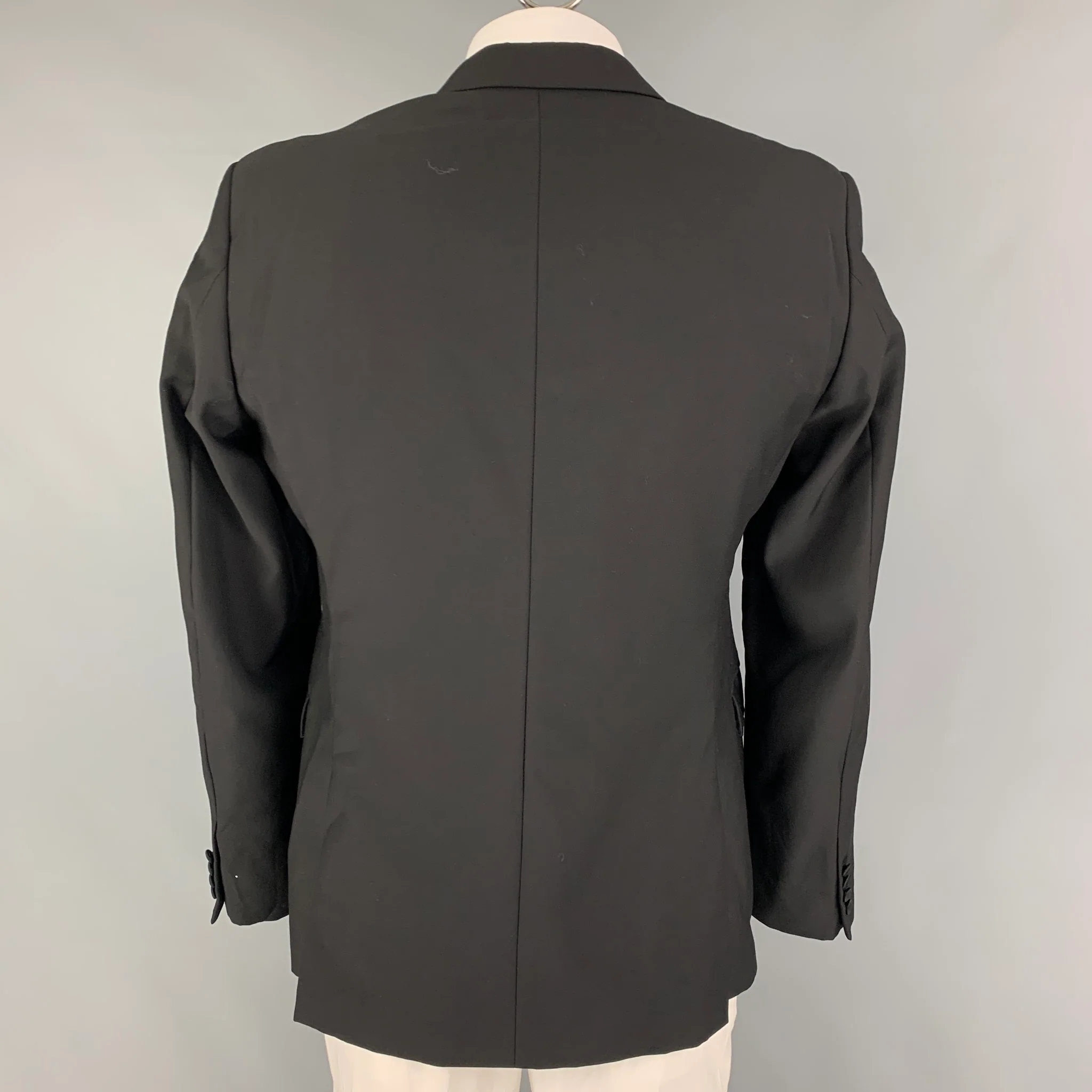 CALVIN KLEIN COLLECTION Size 41 Black Wool Tuxedo Sport Coat