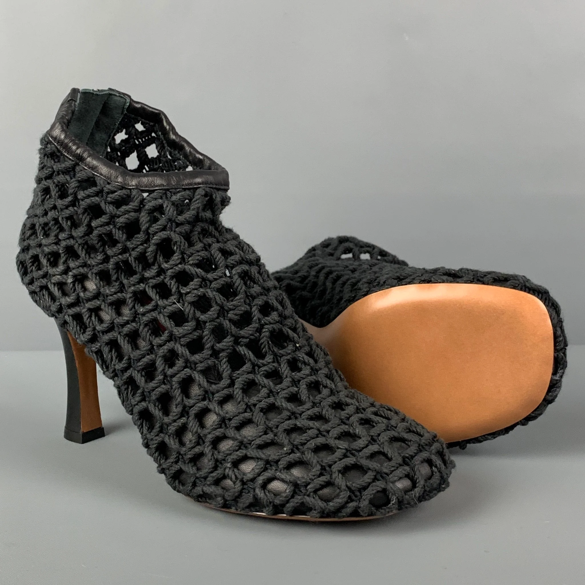 CELINE Size 7.5 Black Leather Woven Rope Heels