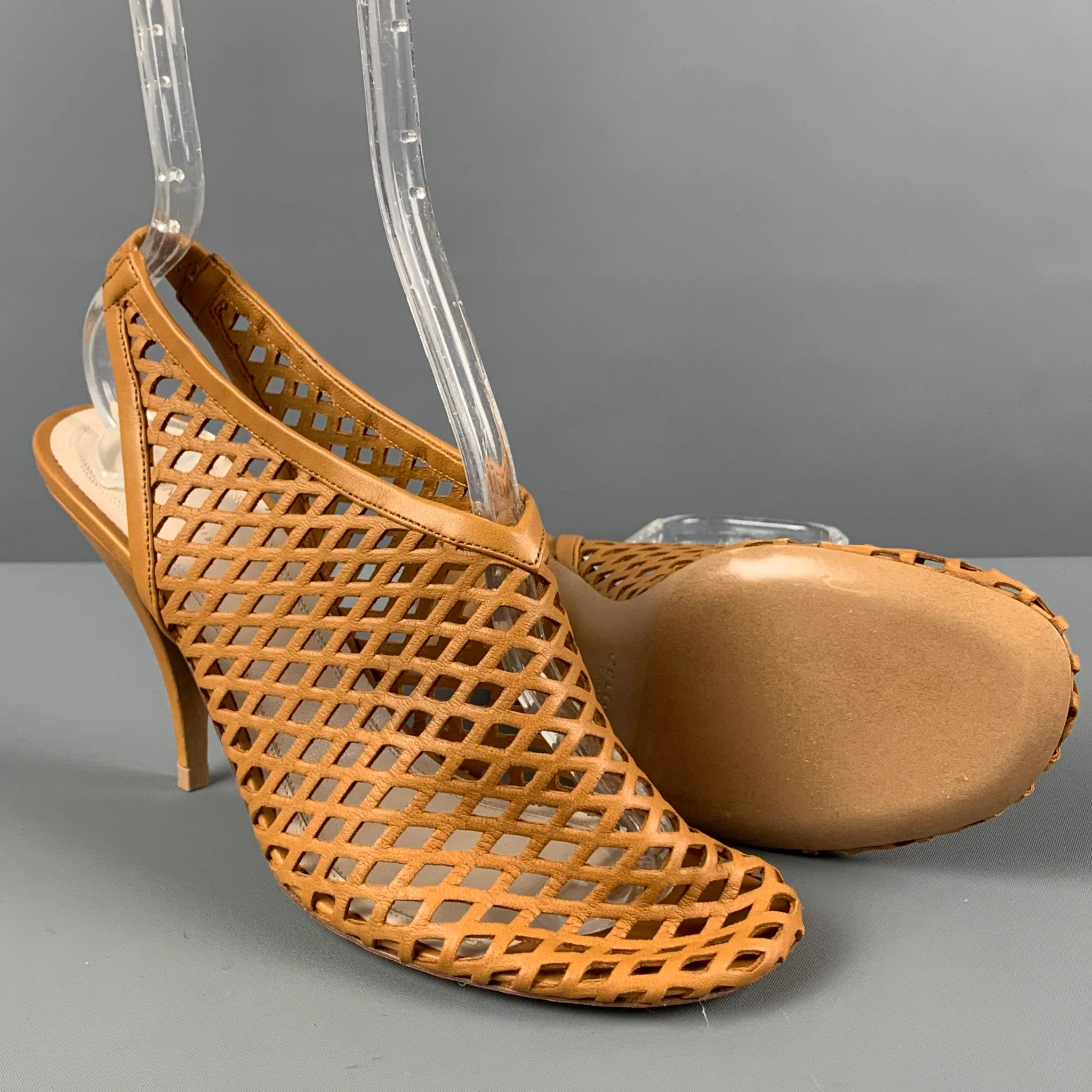 CELINE Size 8 Tan Woven Leather Slingback Pumps