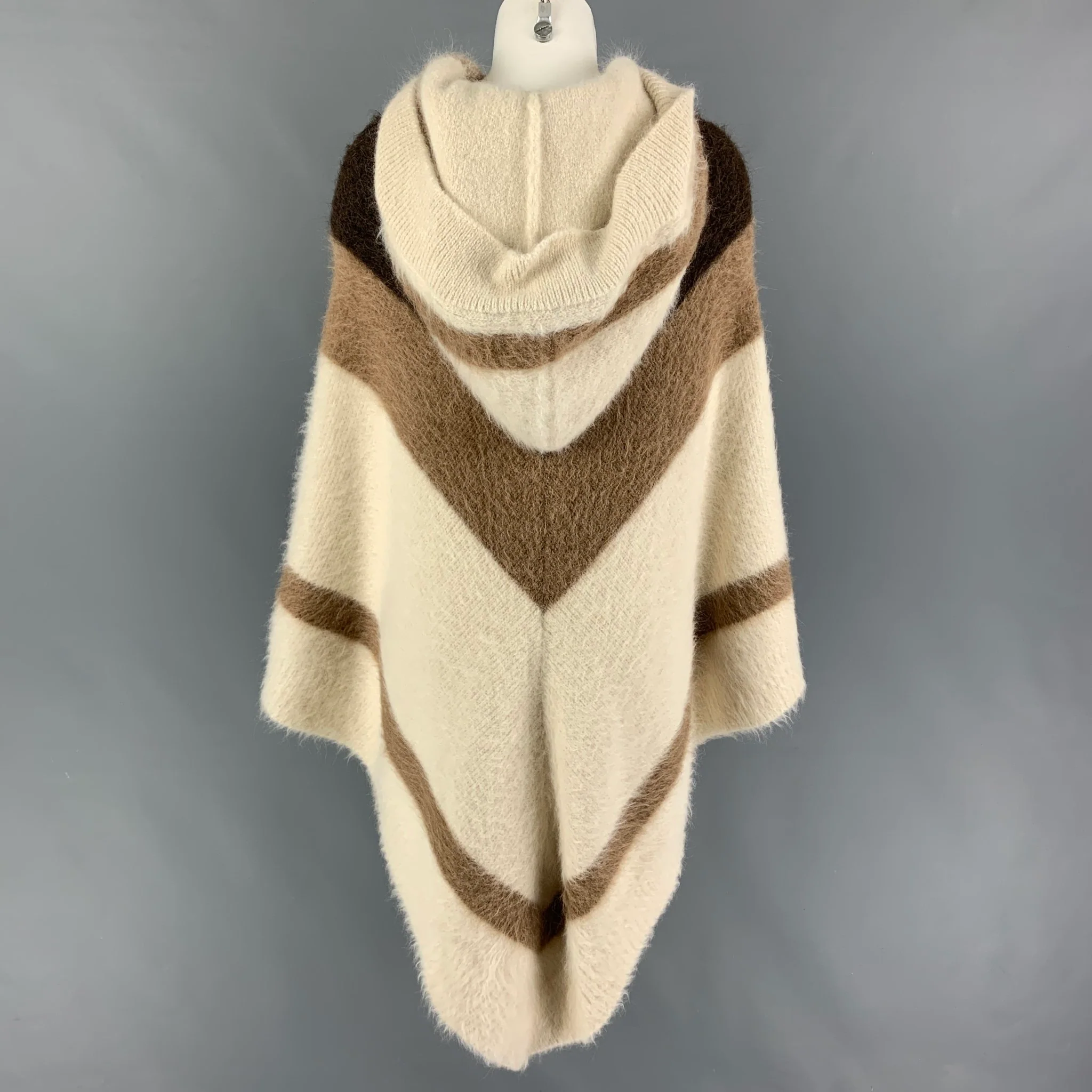 CELINE Size XS Cream Brown Alpaca Blend Color Block Poncho Sweater