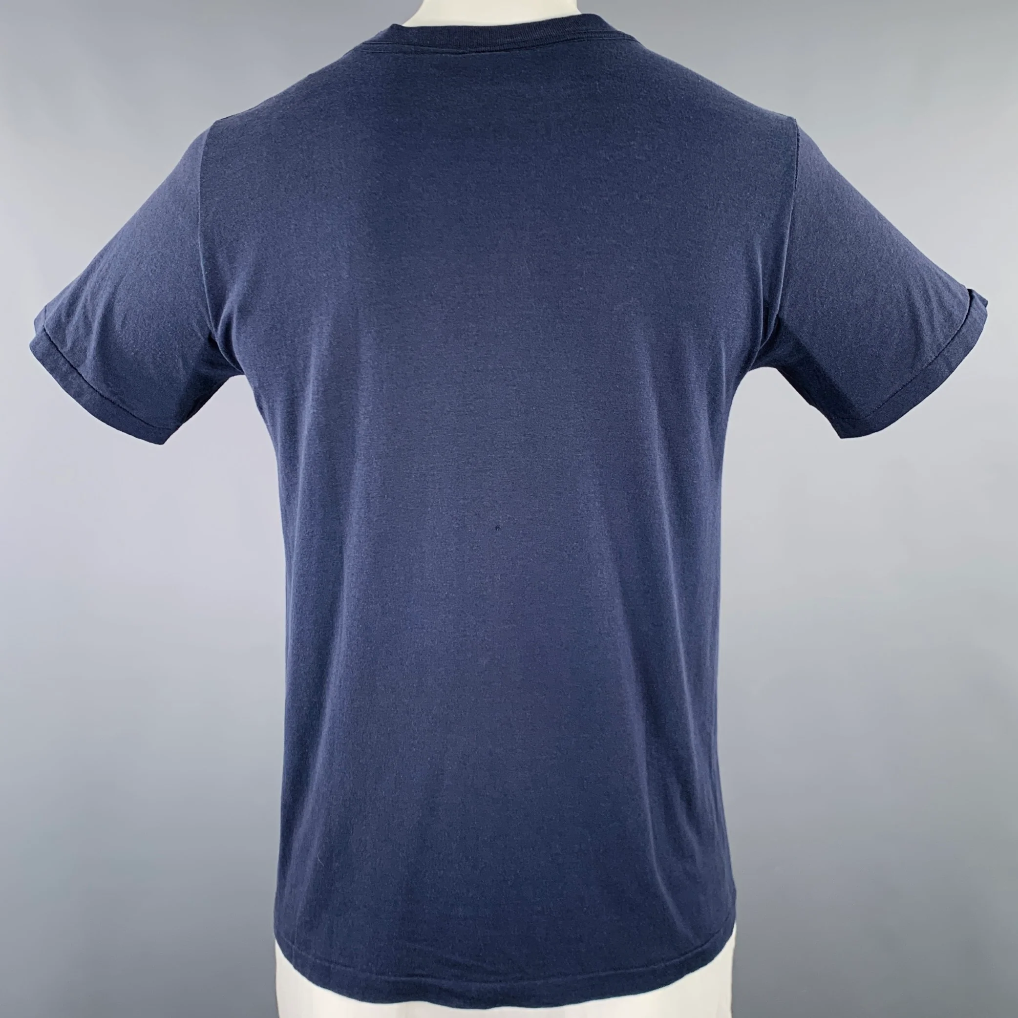 Vintage CHAMPION "Dallas Cowboys" t-shirt in a navy polyester cotton jersey featuring football helmet logo, short sleeves, and crew neck. Made in USA.