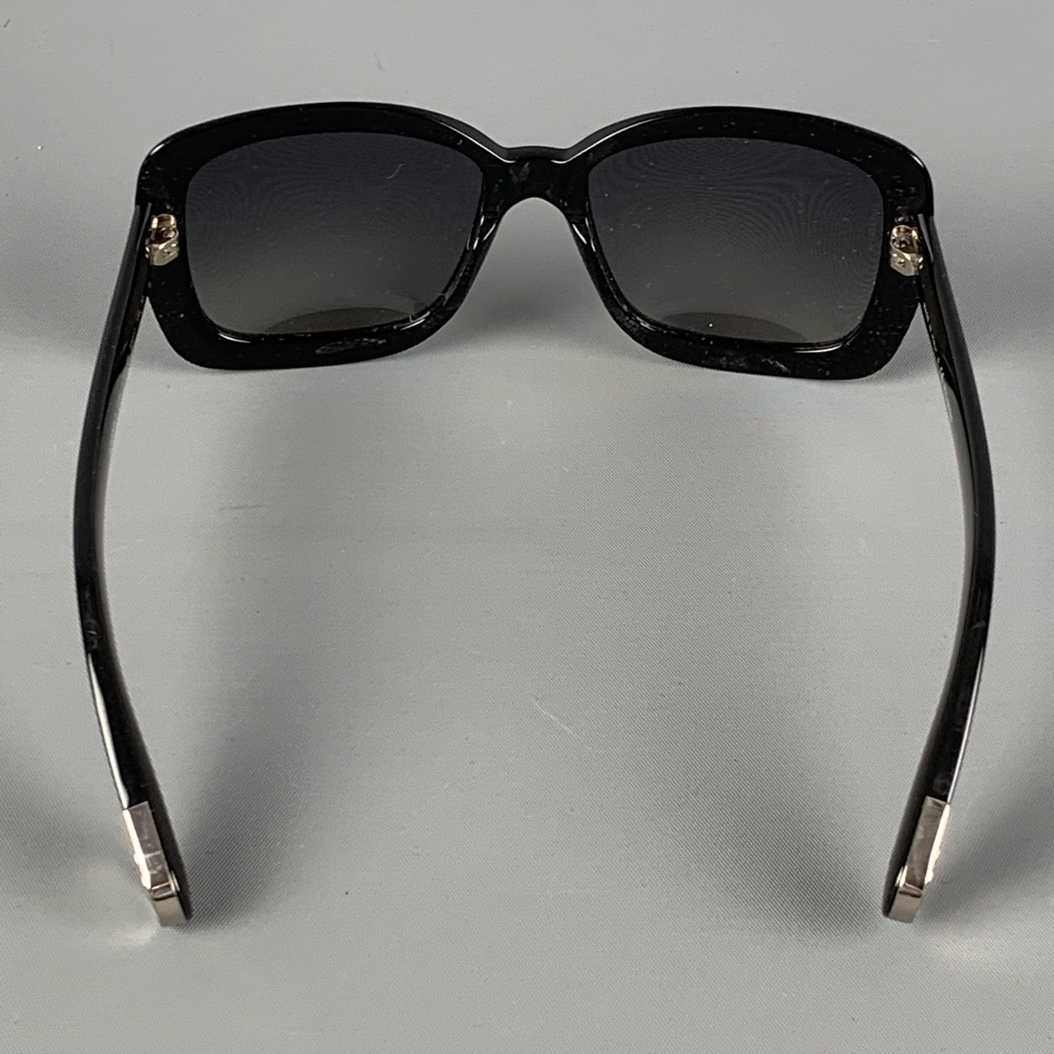 CHANEL sunglasses comes in a black acetate featuring polarized lenses and a silver logo tip design. Includes case. Made in Italy.