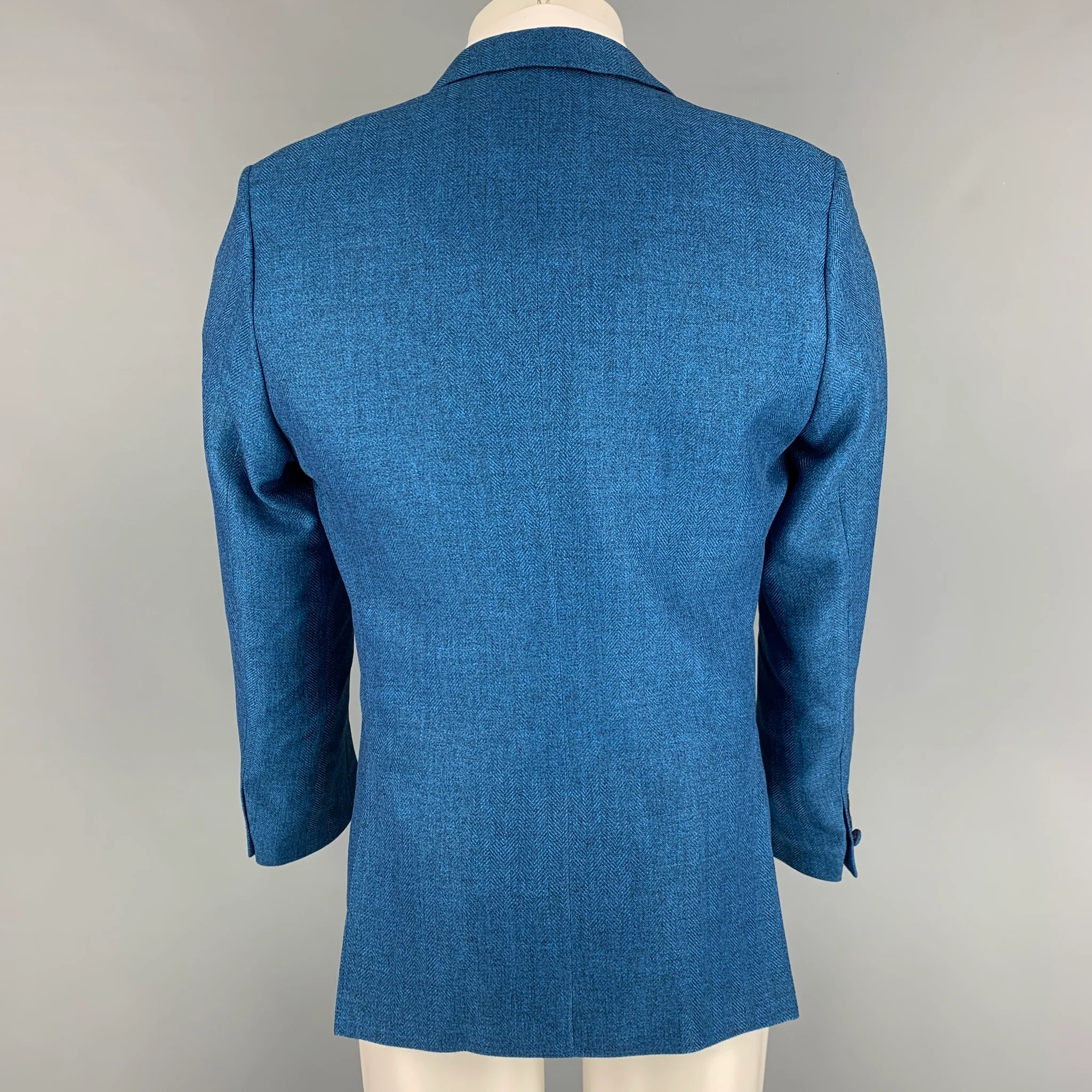 DEITX & CO. Size 38 Blue Herringbone Polyester Notch Lapel Sport Coat