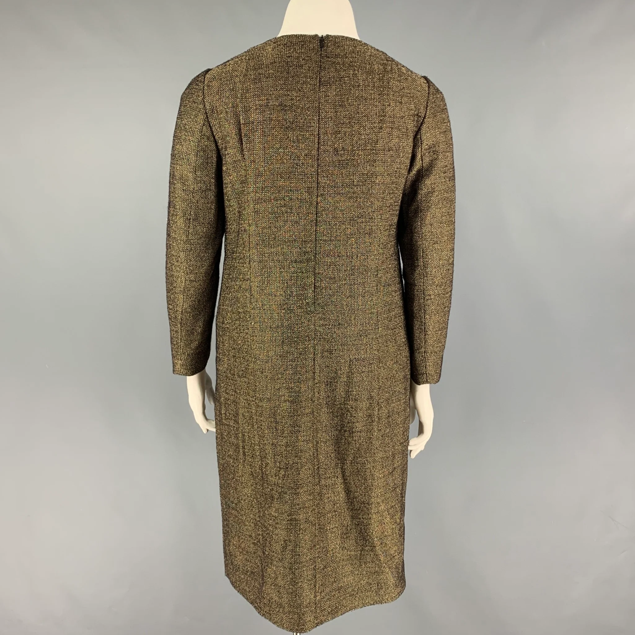 DRIES VAN NOTEN Size 10 Gold Wool Viscose Sheath Dress