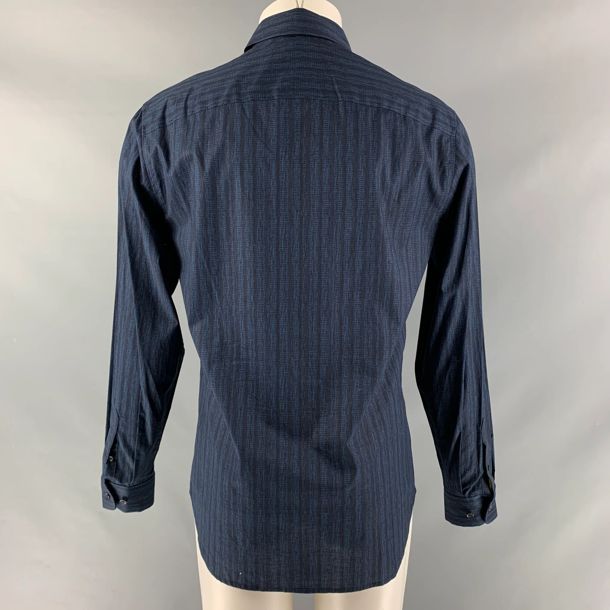 ELIE TAHARI Size M Navy Print Cotton & Elastane Button Up Long Sleeve Shirt