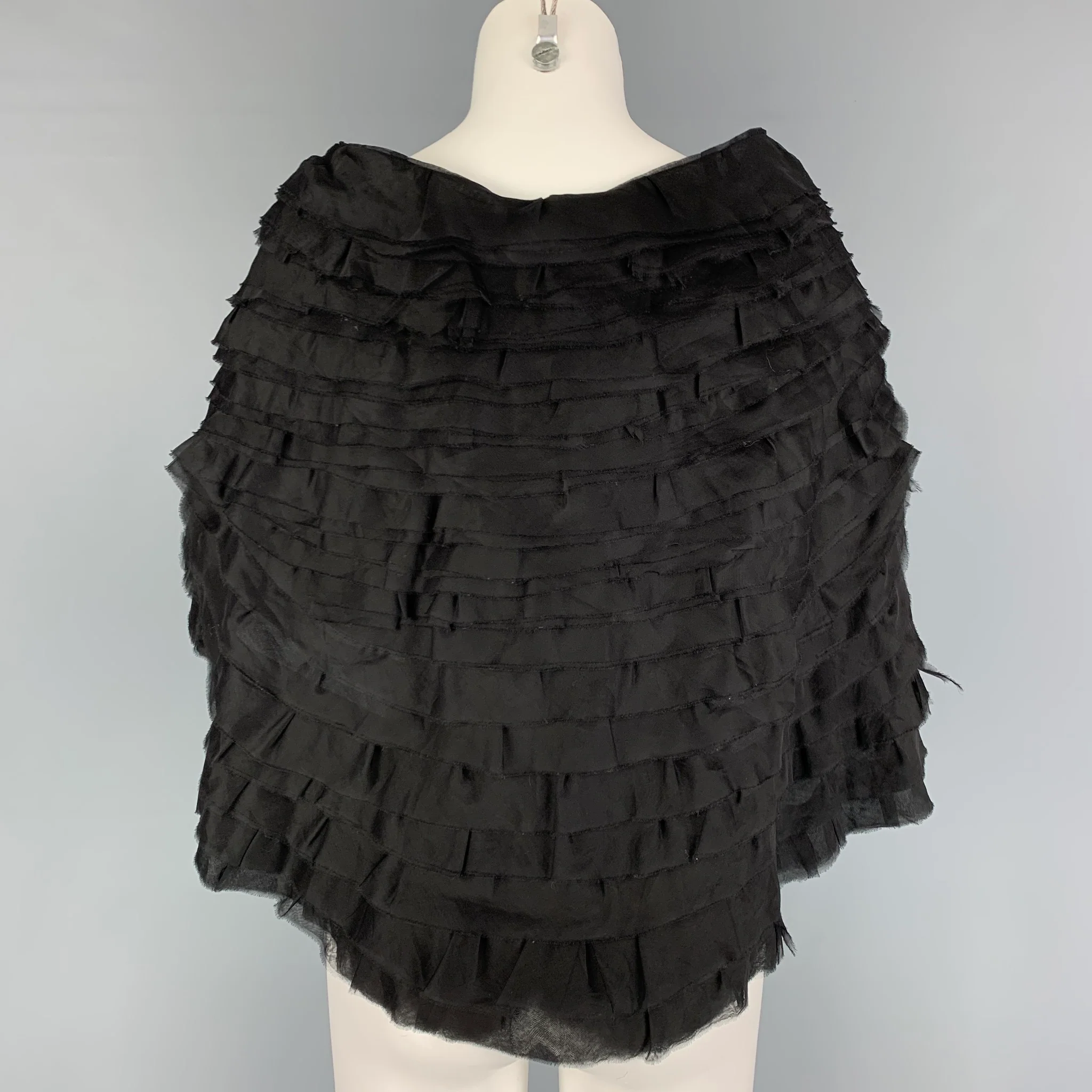 GIORGIO ARMANI Size One Size Black Silk Textured Tiered Cape