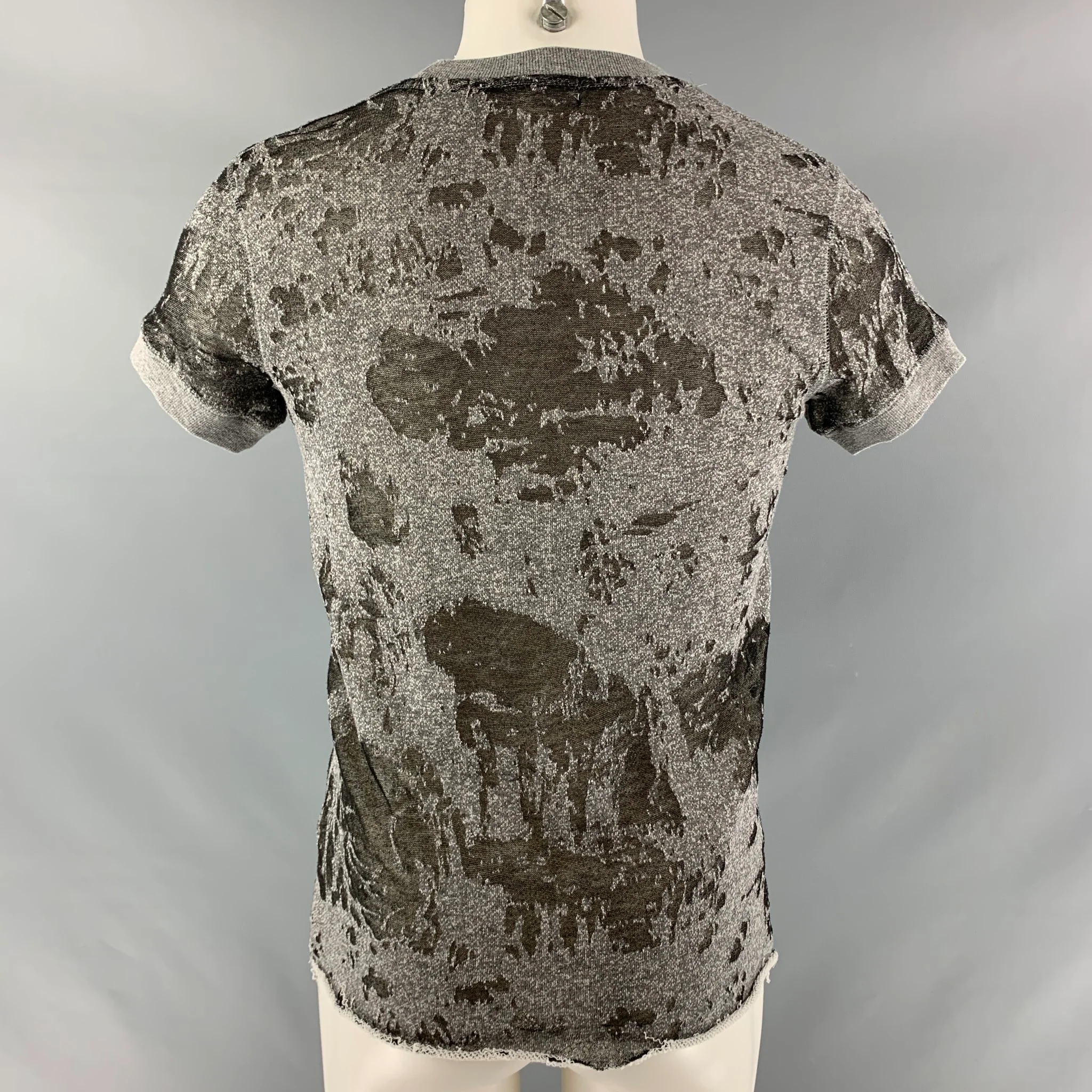 IRO Size XS Gray Distressed Cotton Blend Crew-Neck T-shirt