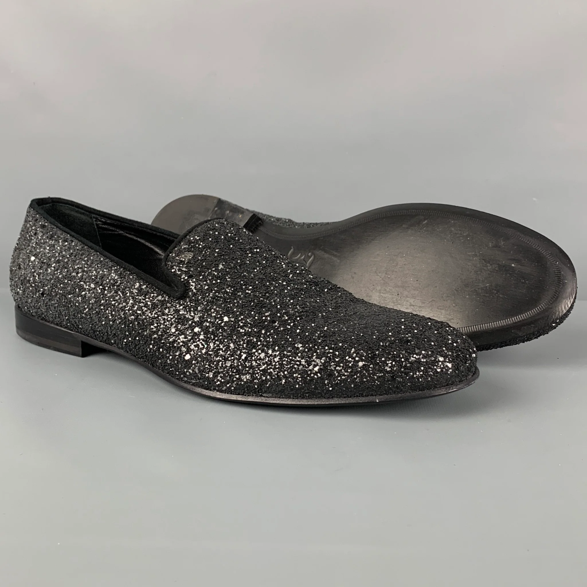 JOHN GALLIANO Size 13 Black Silver Glitter Suede Slip On Loafers