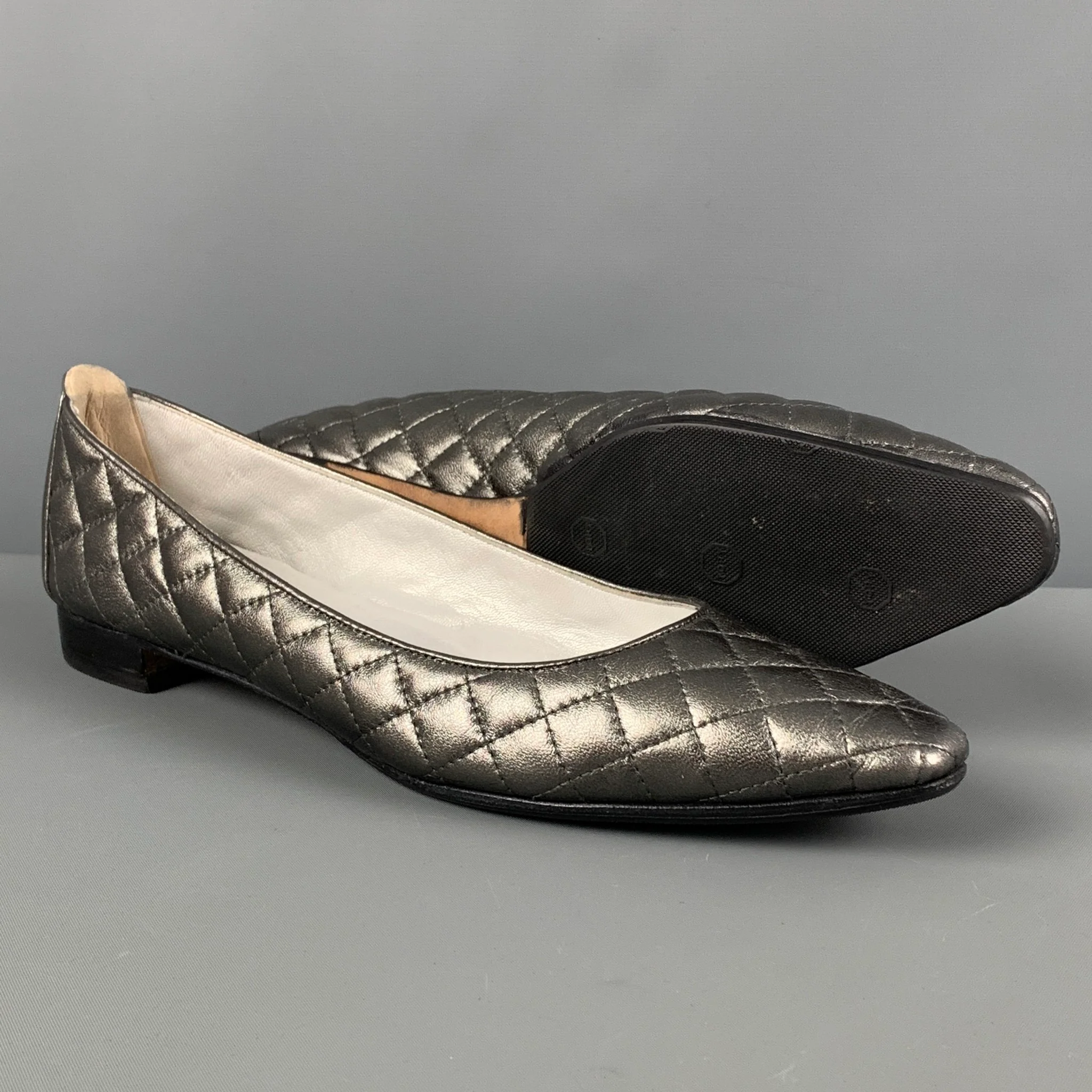 MANOLO BLAHNIK Giungla Size 10.5 Silver Ballerina Rounded Quilted Leather Flats
