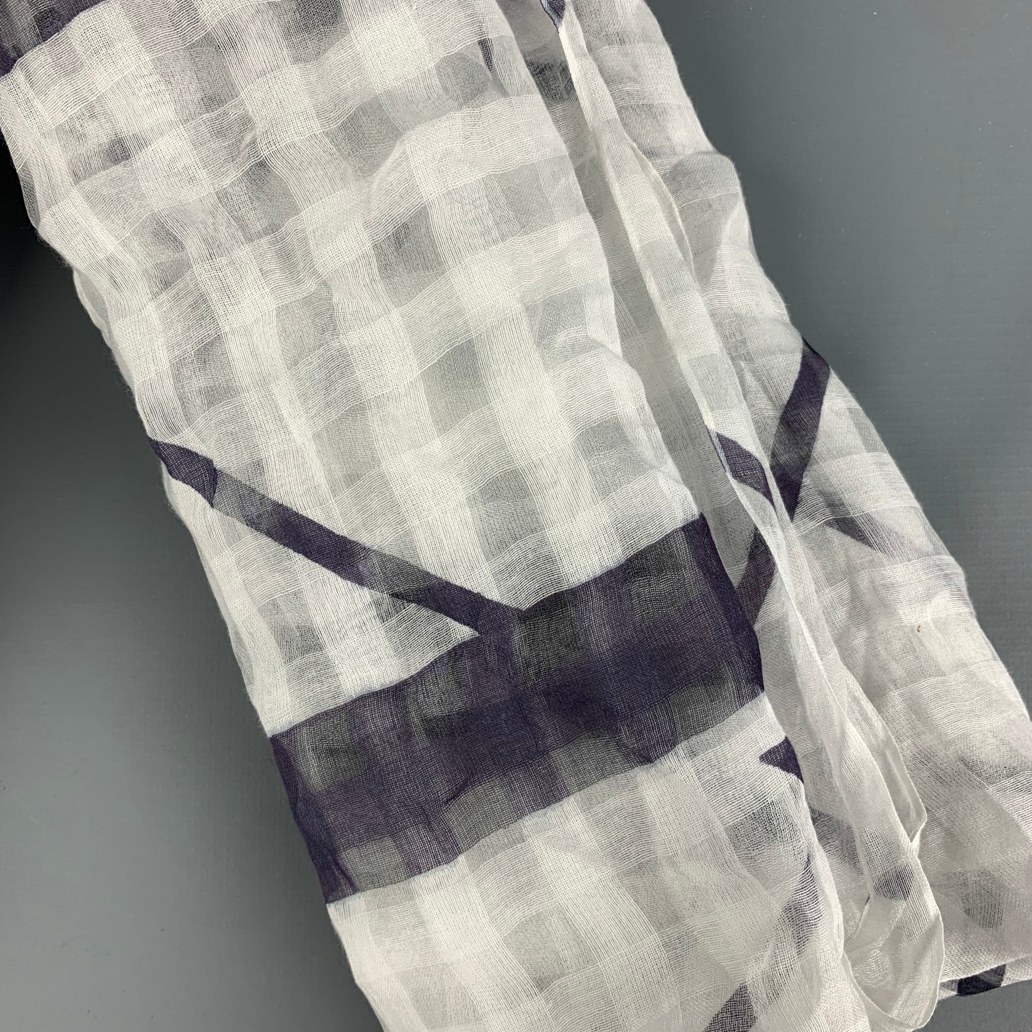 MAPOESIE White Purple Cotton Silk Plaid Scarf