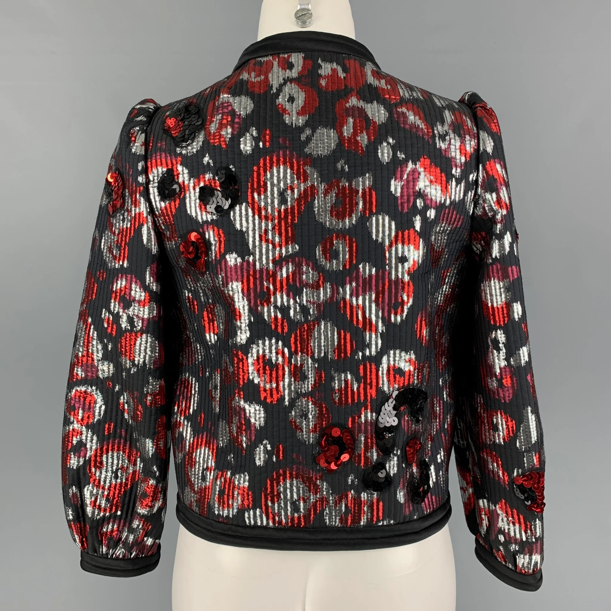 MARC JACOBS Size 2 Black Silver Burgundy Jacquard Jacket
