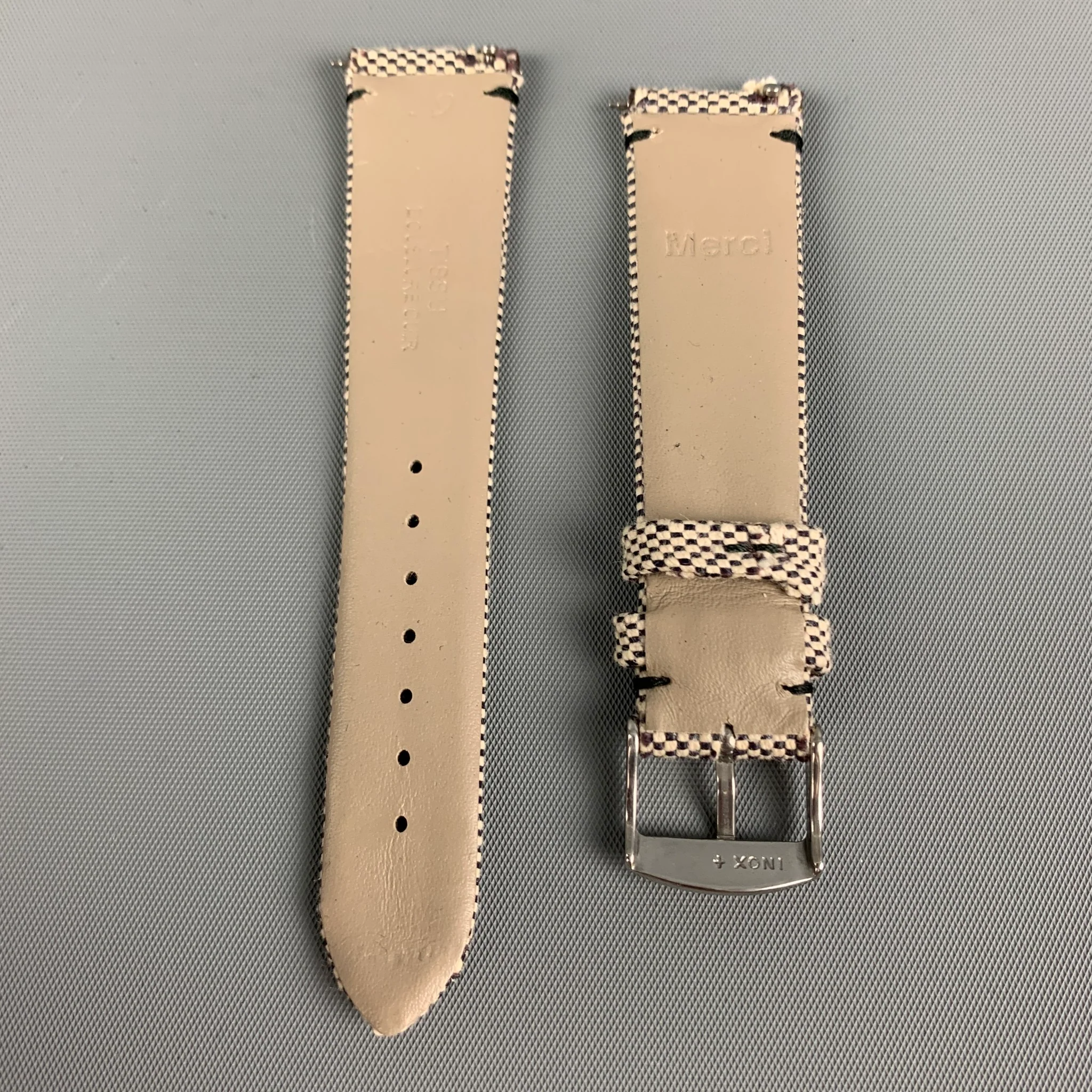 MERCI watch band comes in a grey & black checkered material featuring a stainless steel buckle. Designed to be compatible with all Merci watches.