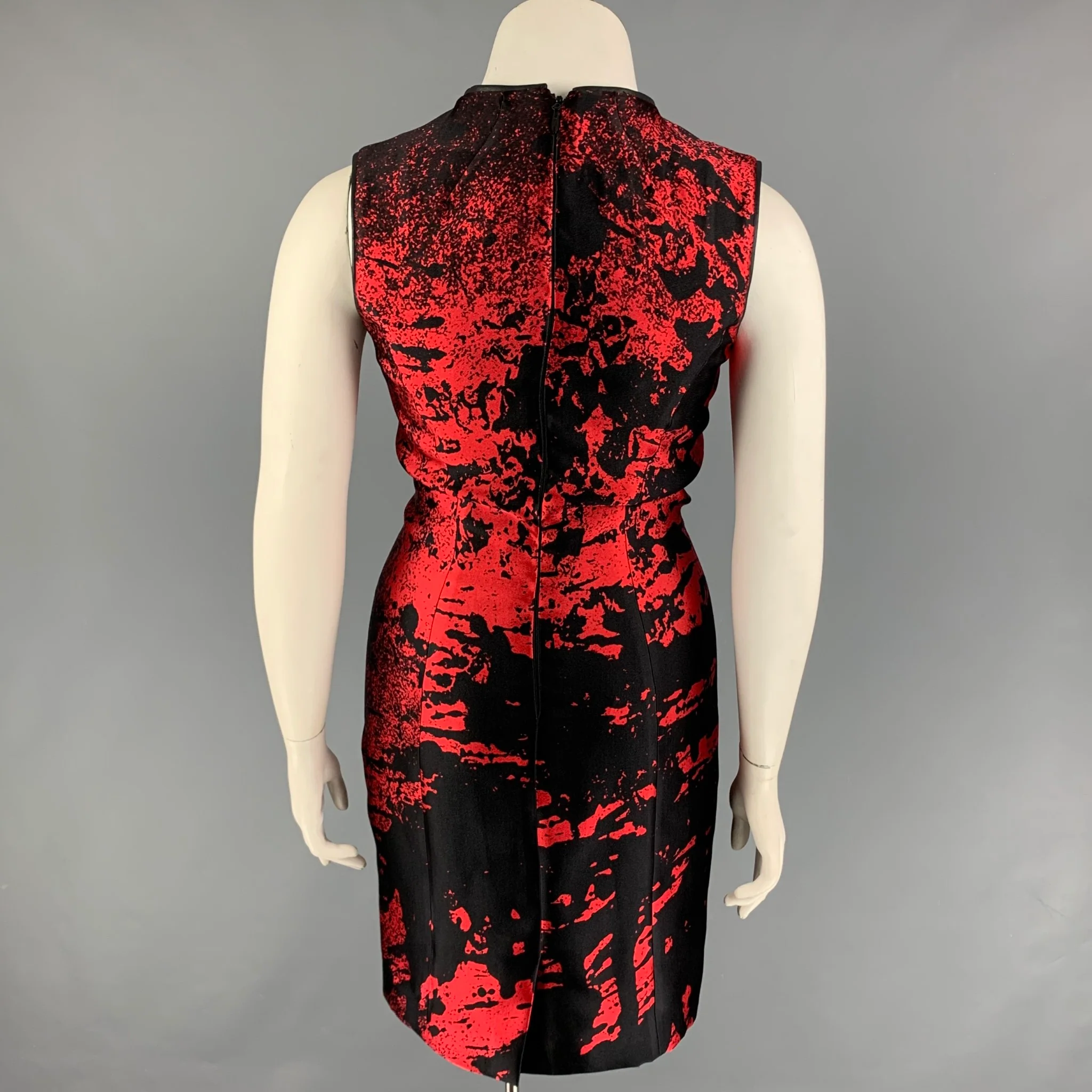 MONIQUE LHUILLIER Size 10 Red Black Wool Lycra Abstract Sheath Dress