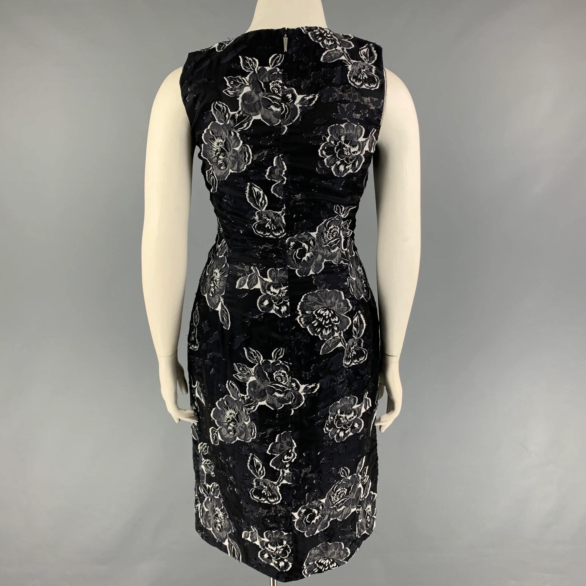 PRABAL GURUNG Size 10 Black Navy Silk Polyester Floral Sleeveless Dress