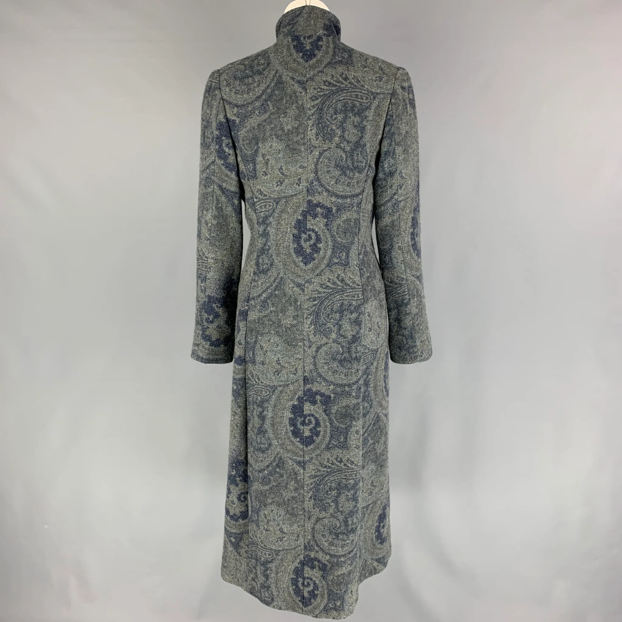 RALPH LAUREN Black Label Size M Grey Blue Wool Paisley Hidden Buttons Coat