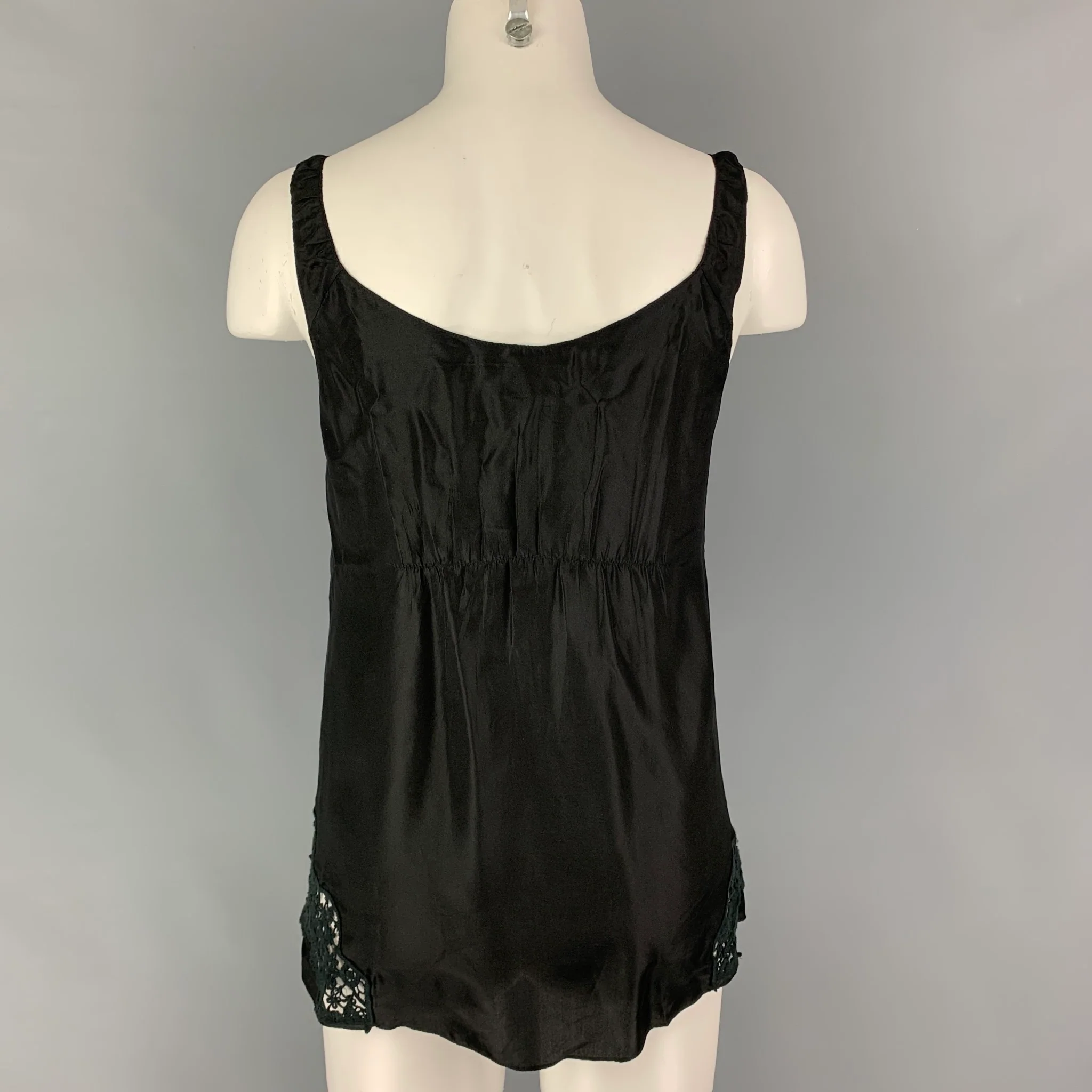 REBECCA TAYLOR Size 0 Black Silk Embroidered Camisole Casual Top