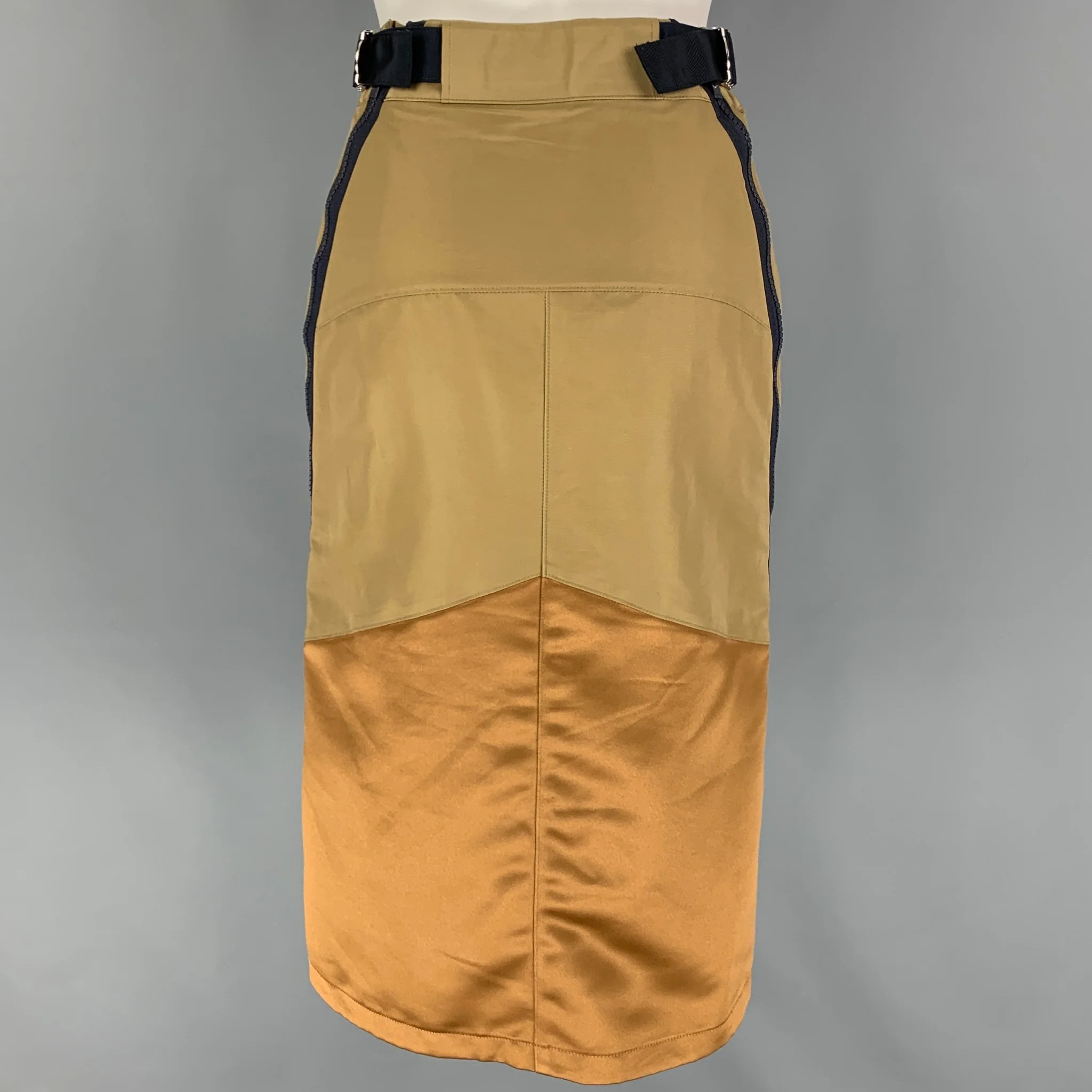 SACAI Size 0 Khaki Gold Cotton Blend Color Block Pencil Below Knee Skirt