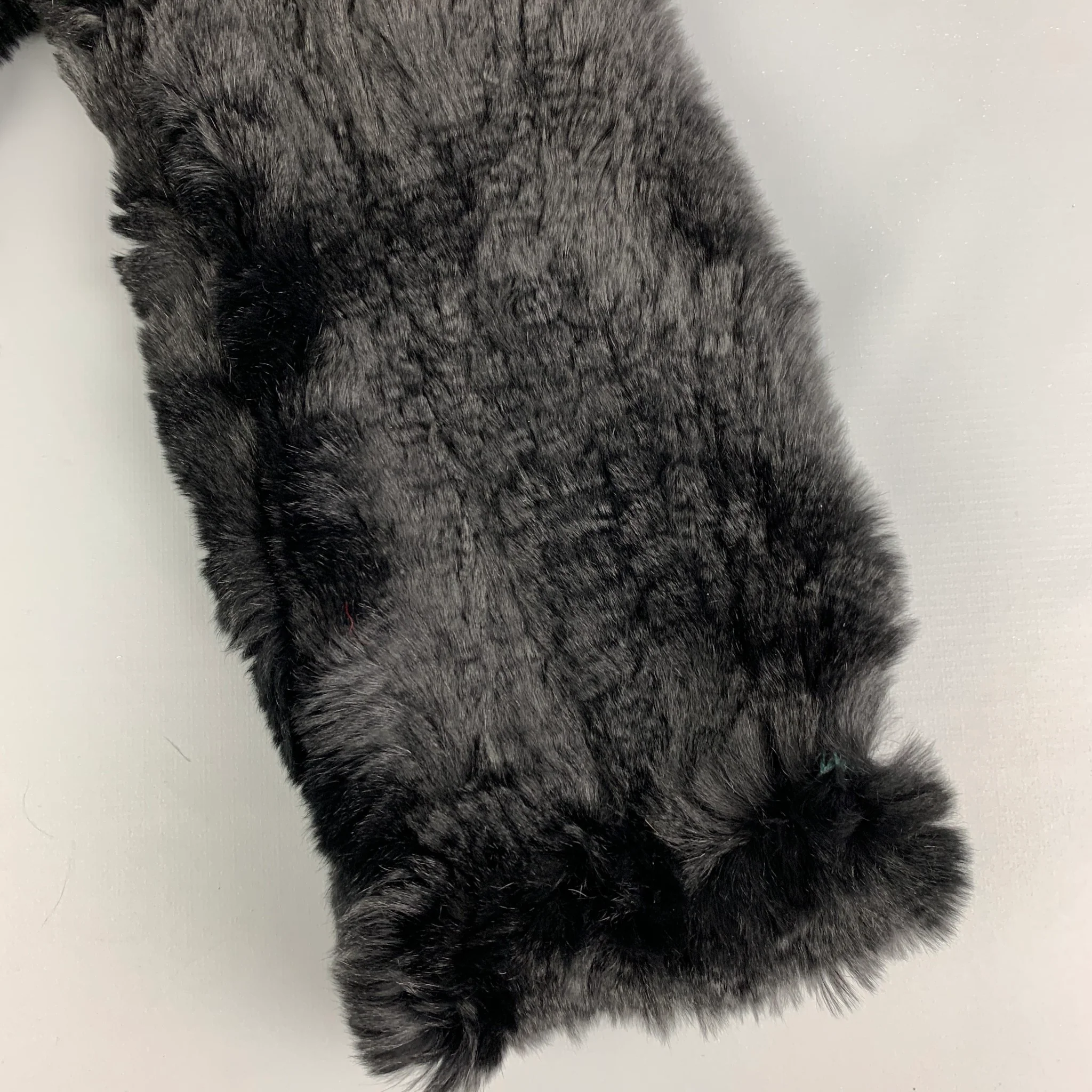 VINTAGE Black Woven Fur Fringe Scarf