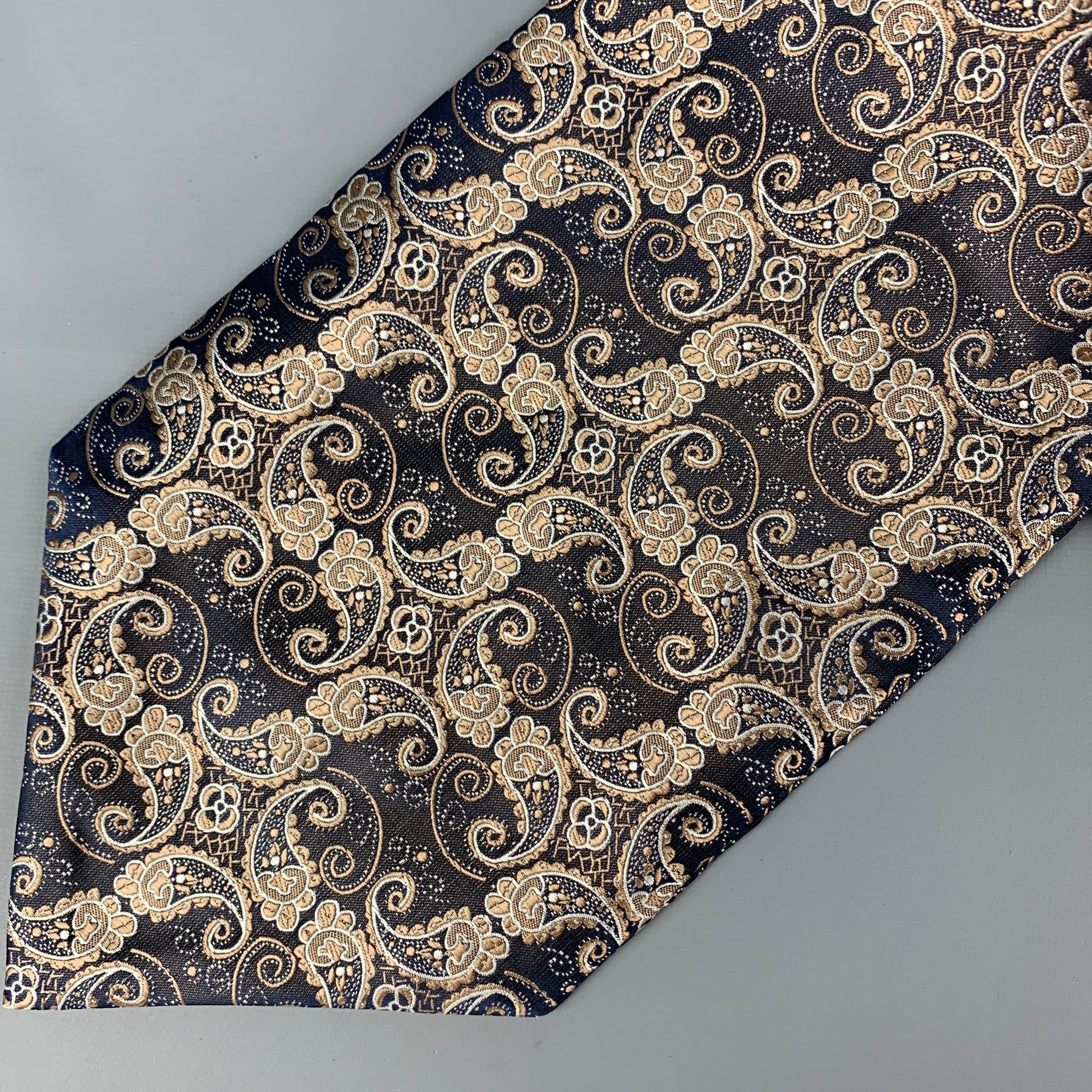 VINTAGE Navy Gold Paisley Ascot